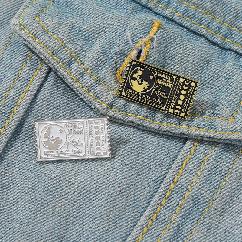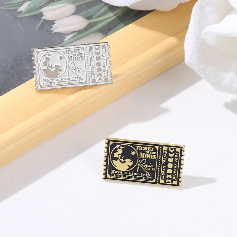 Эмалированные булавки с изображением билета в Луну в черном и белом цвете, красивая брошь в поездку, булавка на лацкан, аксессуары, подарок на рюкзак, детские украшения, оптовая продажа