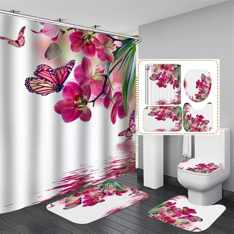 Водонепроницаемая занавеска для душа с принтом бабочек, занавеска для душа из полиэстера, аксессуары для ванной комнаты