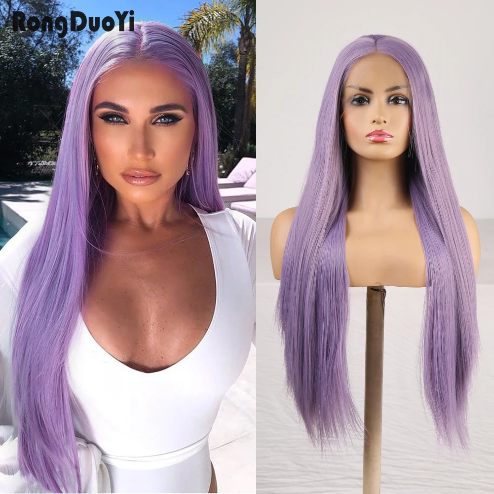 RONGDUOYI фиолетовые синтетические кружевные передние парики для женщин, длинный парик на сетке, шелковистый прямой парик, натуральные парики для косплея, парики для вечеринки