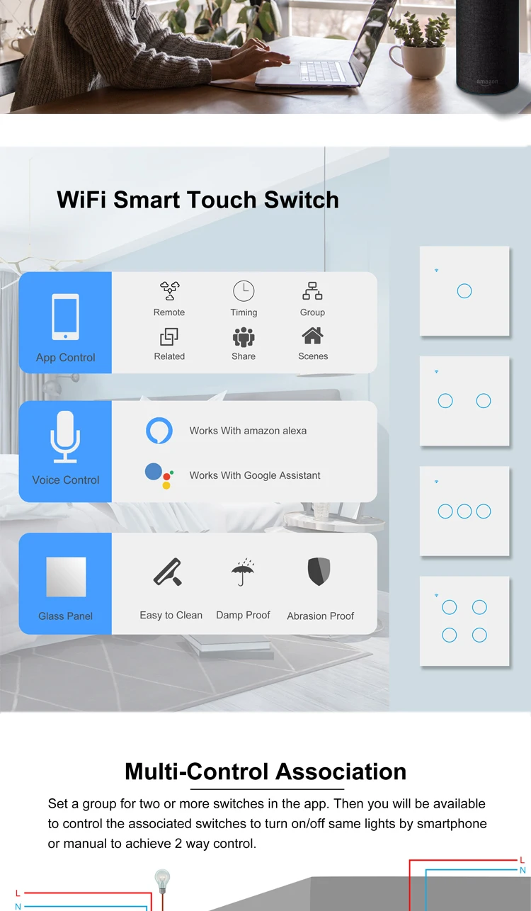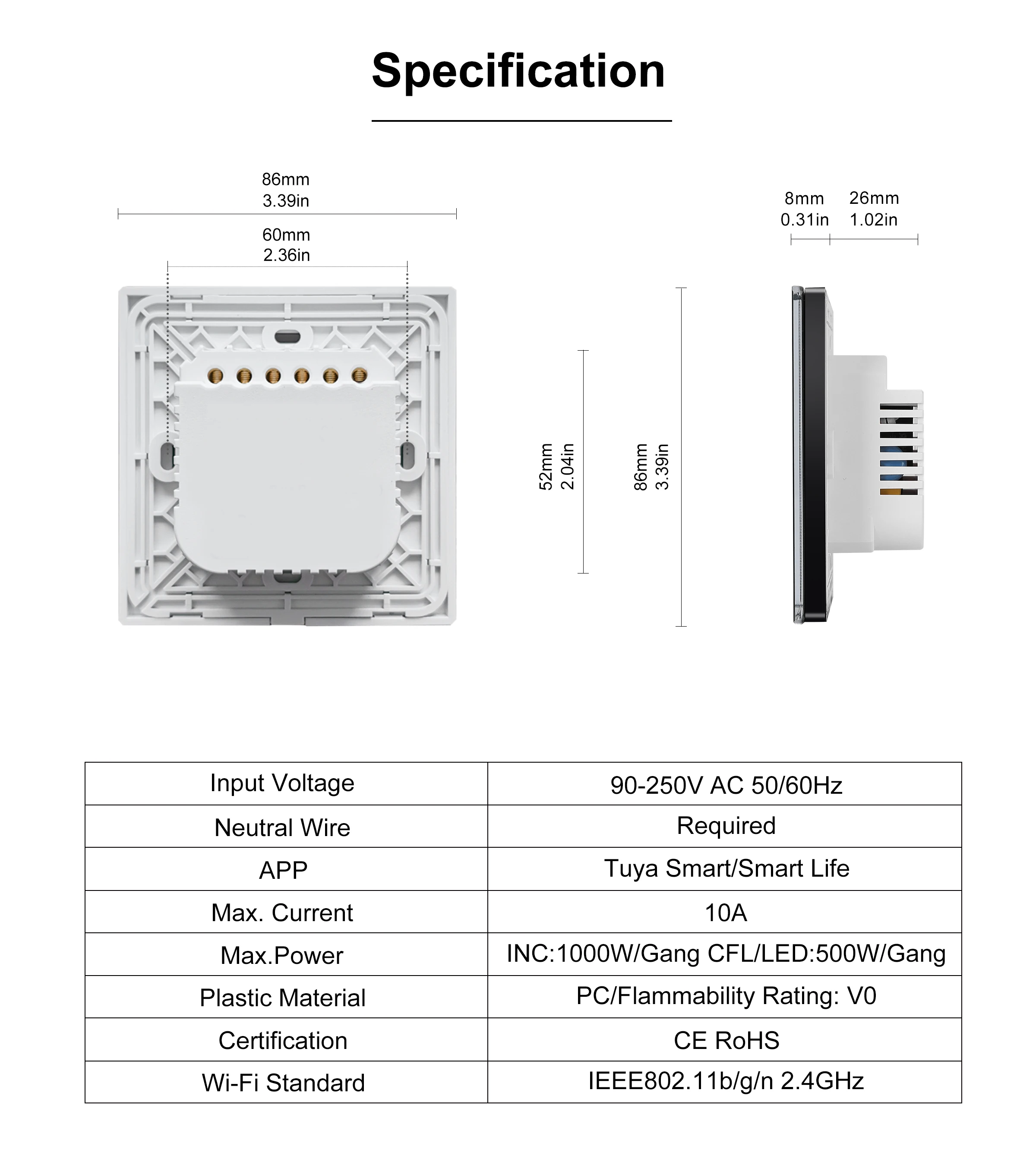 6. Безопасность и Сертификация: настенный выключатель имеет высококачественные материалы, такие как огнестойкий корпус, ФОСФОРНЫЕ бронзовые соединения и передовое PC + закаленное стекло, он может обеспечить защиту от огня, защиту от перегрузки для защиты вашей семьи.