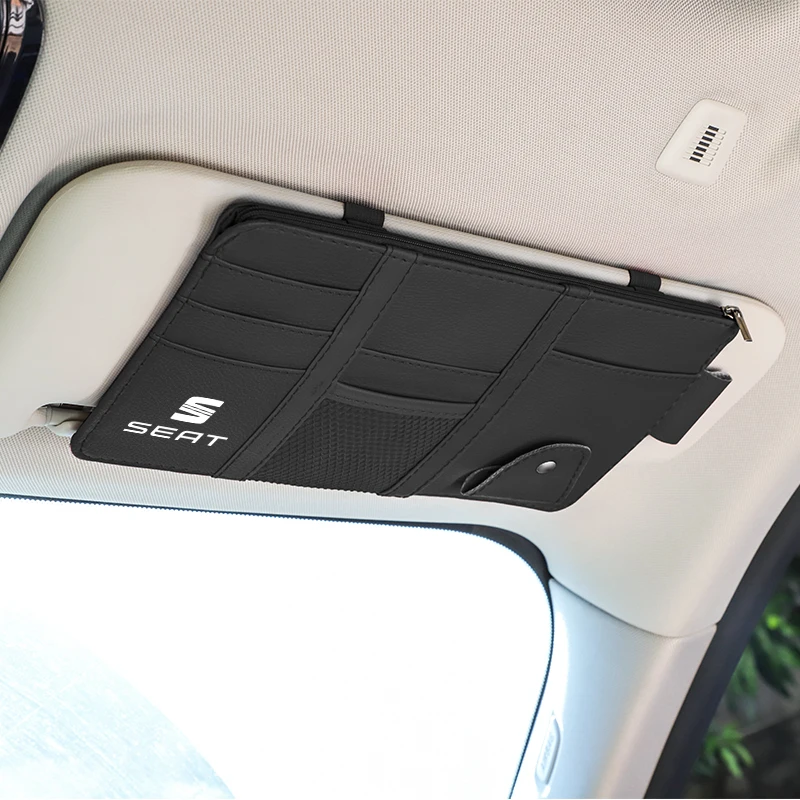 Автомобильный контейнер для хранения, зажим для очков, солнцезащитный козырек, кожаный чехол, карта для Seat Leon Ibiza Ateca Formentor E-Racer Arona Altea Toledo Alhambra