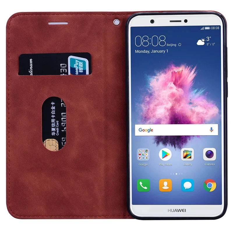 Кожаный чехол-кошелек с откидной крышкой для смартфона Huawei P, Магнитный чехол-книжка с отделением для карт для Huawei P Smart Psmart 2018, чехол