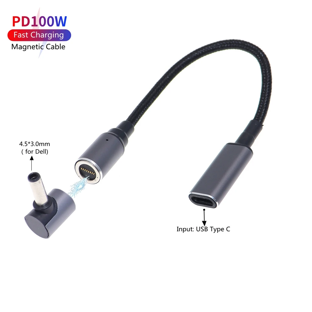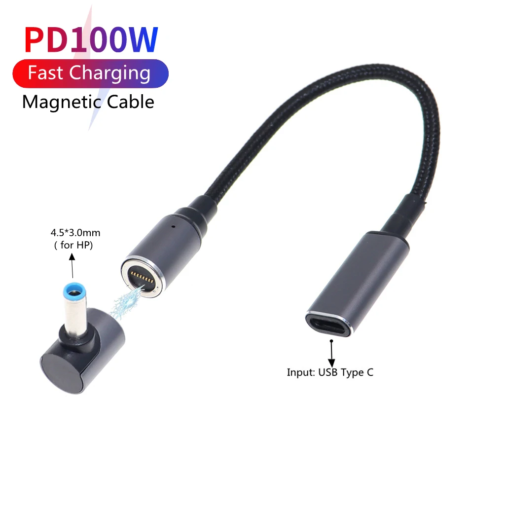 100 Вт USB C Магнитный кабель Type C до 4,5x3,0 мм штекер конвертер PD провод для быстрой зарядки для HP / Dell ноутбука зарядное устройство