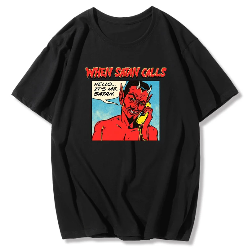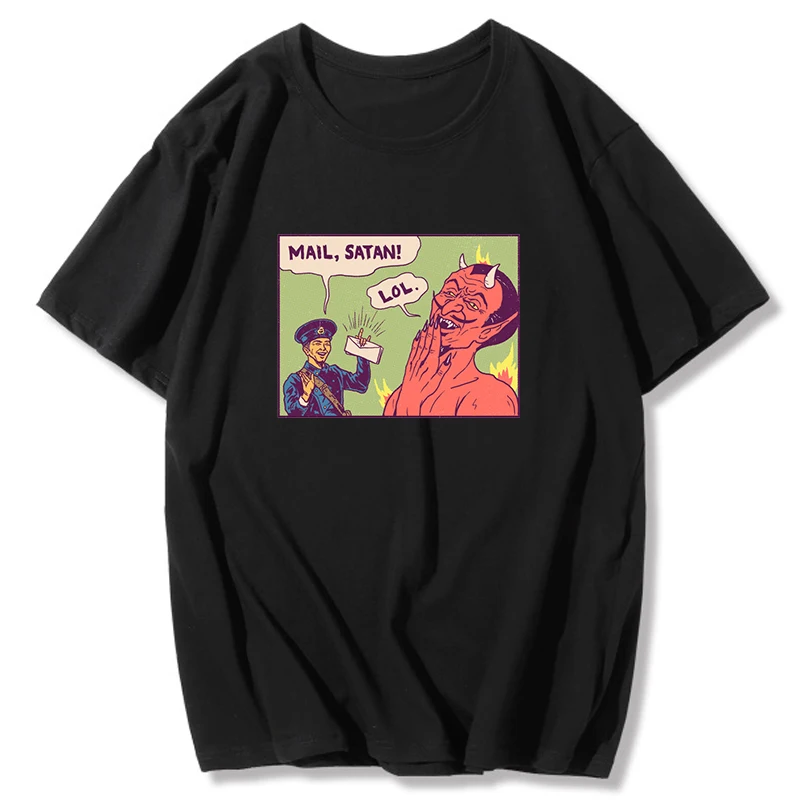 Летняя готическая Черная футболка с надписью сатана, черного дьявол...