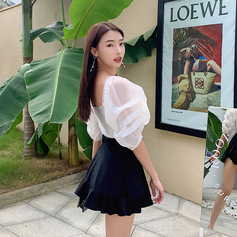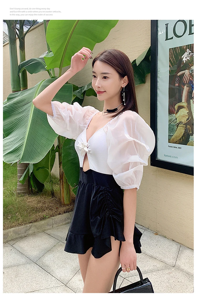 Слитный купальный костюм с пышными рукавами, женская одежда для пла...