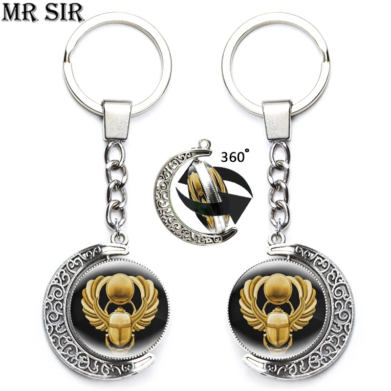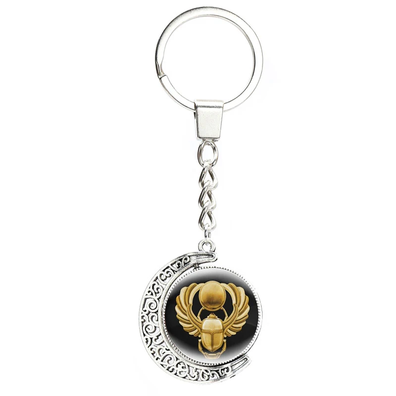 Новинка, поворотный брелок со стеклянной подвеской в виде египетского скалаба, модный брелок для ключей в винтажном стиле с защитой Египта