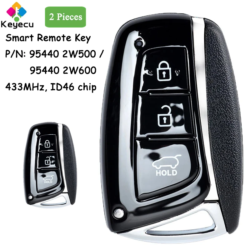Смарт-ключ для автомобиля KEYECU, 2 шт., с 3 кнопками, 433 МГц, чип ID46 для Hyundai Santa Fe 2012-2015, Fob 95440 2W500 2W600
