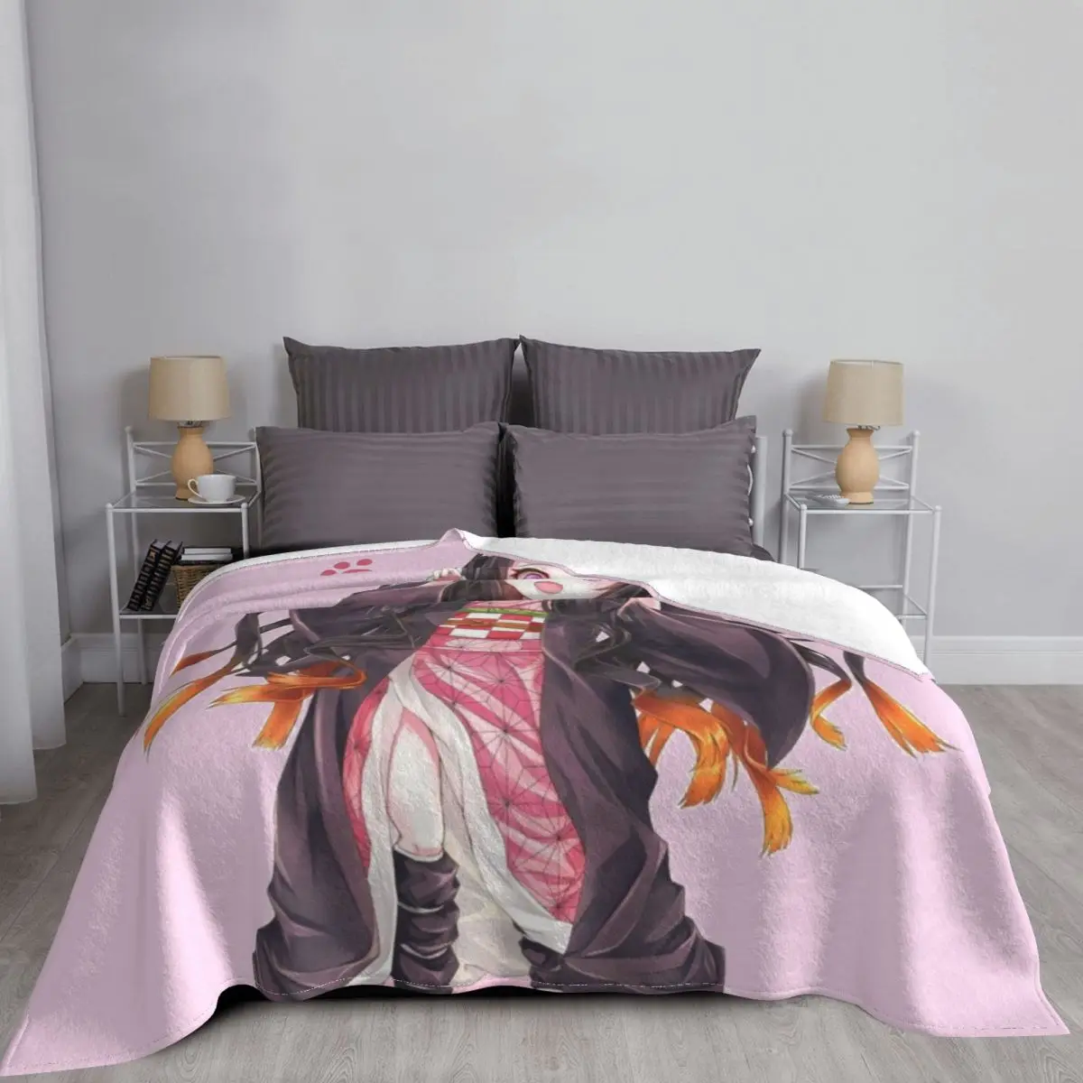 Одеяло Nezuko ( Kimetsu No Yaiba), теплое плюшевое супермягкое Фланелевое покрывало с изображением рассекающего демонов аниме, постельное белье, покрывало, кушетка