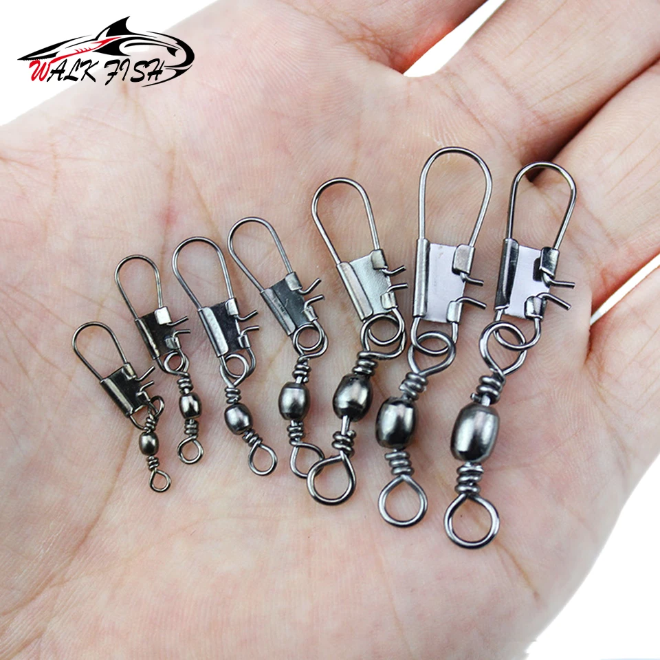 WALK FISH 50 шт.лот рыболовный соединитель, штифт, подшипник качения, вертлюг из нержавеющей стали с защелкой, рыболовный крючок, снасти, аксессуары