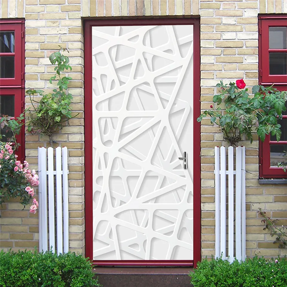 Виниловые водонепроницаемые наклейки на двери, настенные Стикеры с белыми линиями