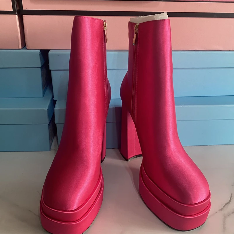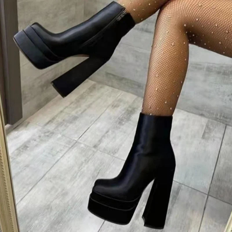 Женские ботильоны на платформе, ботинки на высоком каблуке с квадратным носком и боковой молнией, большой размер 43, зимняя обувь, 2022