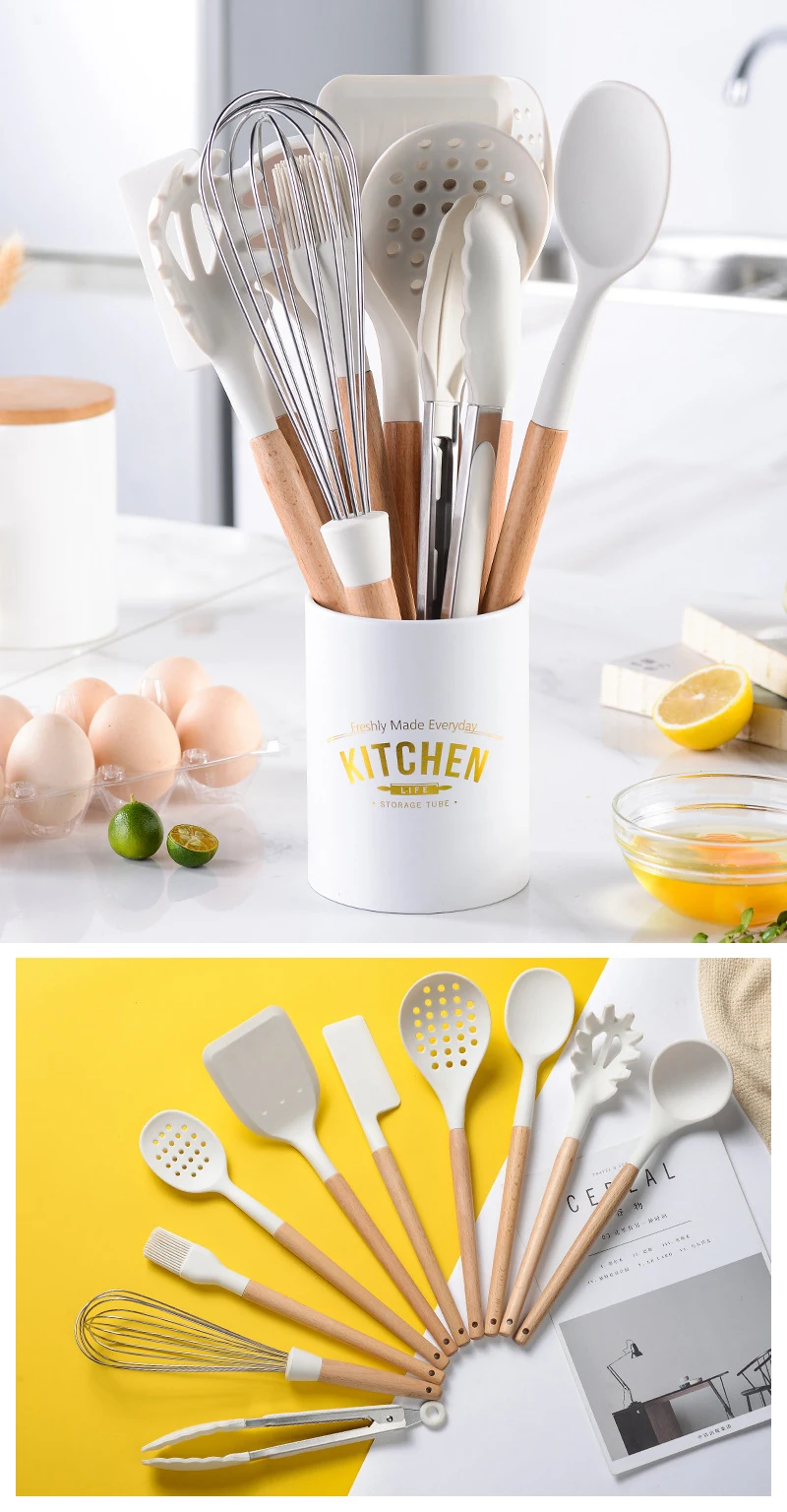 11 шт. силиконовая кухонная посуда, термостойкая антипригарная дере...