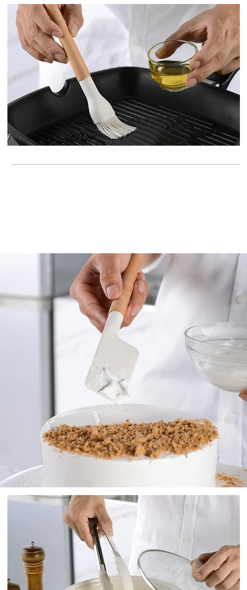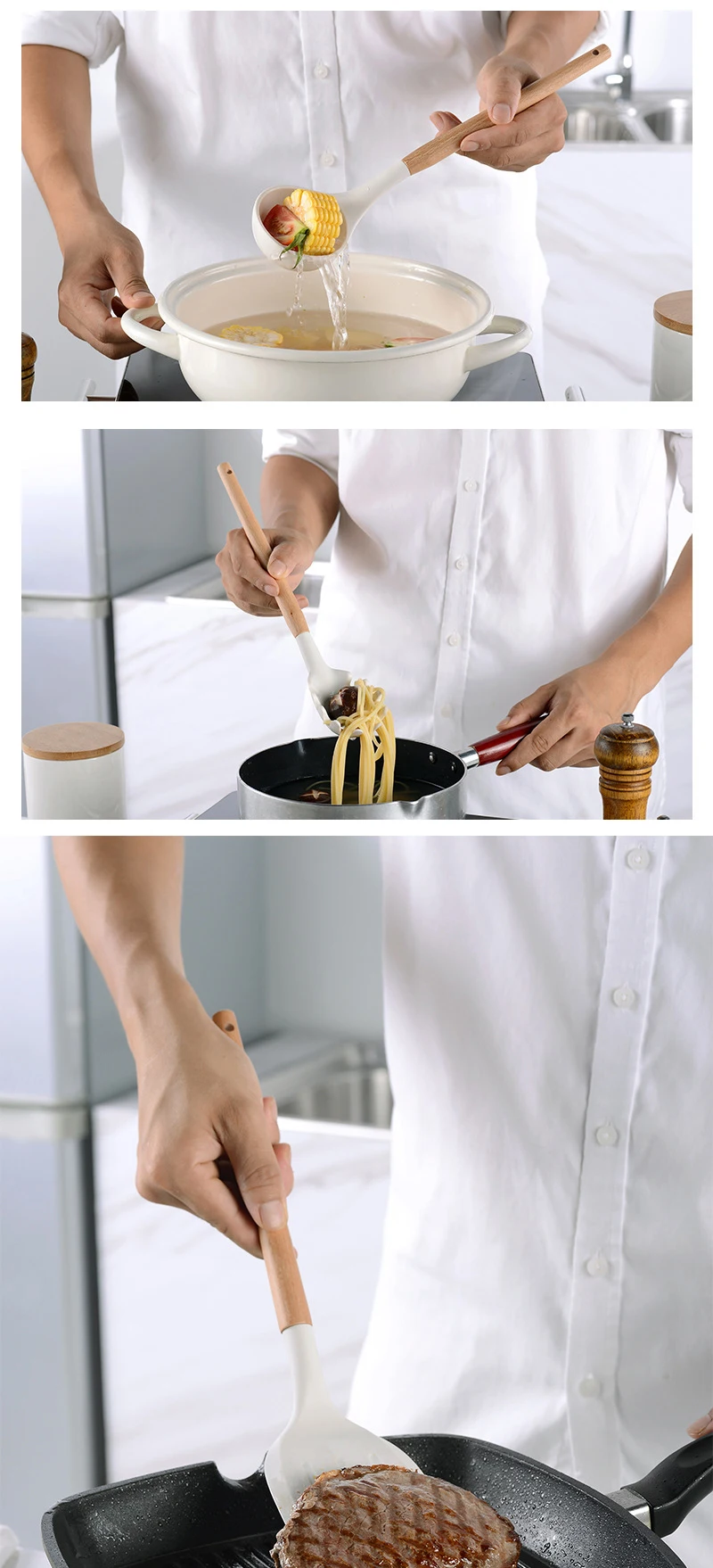 Новинка, кухонная утварь из ручка из белого дерева пищевого силикон...