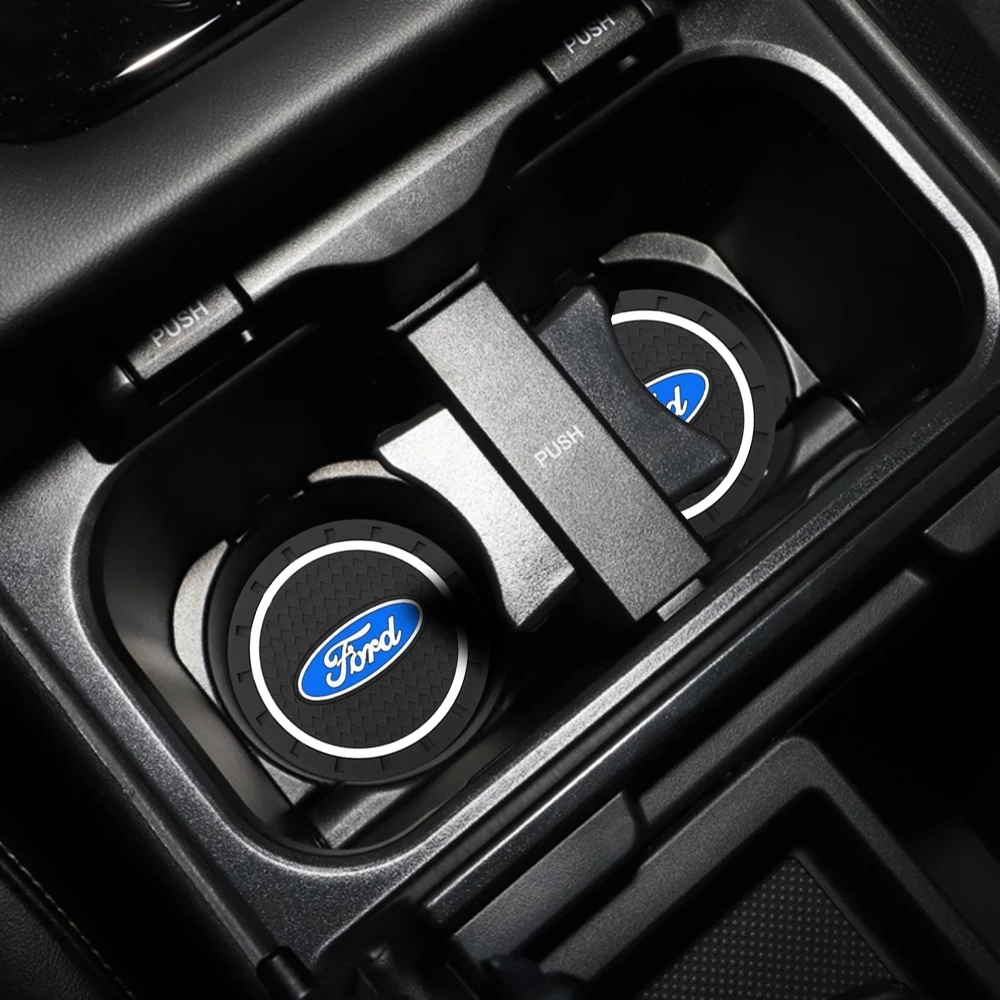 Новый авто логотип Coaster Автомобильный держатель для стакана воды Коврик Противоскользящий коврик для автомобиля Ford Fiesta EcoSport ESCORT Ranger Mondeo Mustang FOCUS 2 3 4