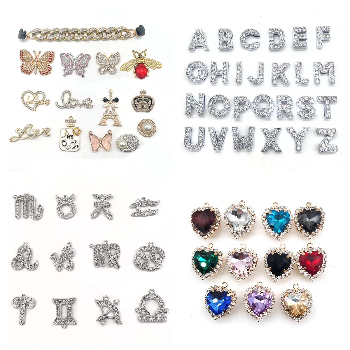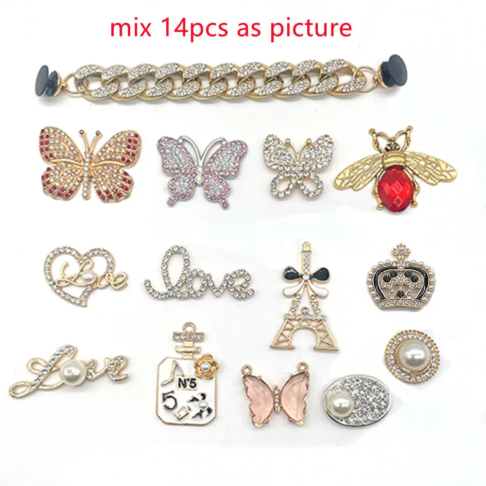 Модные металлические буквы в форме сердца обуви шармы аксессуары DIY Стразы бабочки клоги детские подарки JIBZ Croc