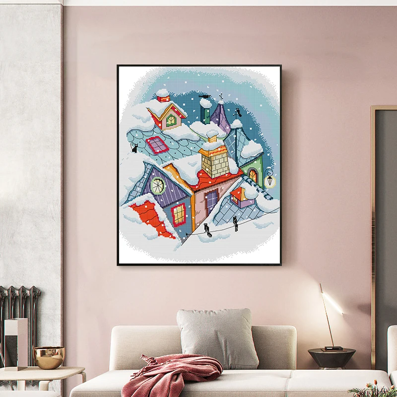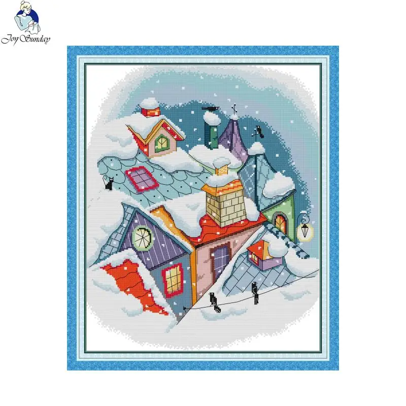 Joy Sunday набор крестиков остаточный снег на крыше пейзаж узор 14CT 11CT холщовая ткань с принтом вышивка набор домашний декор