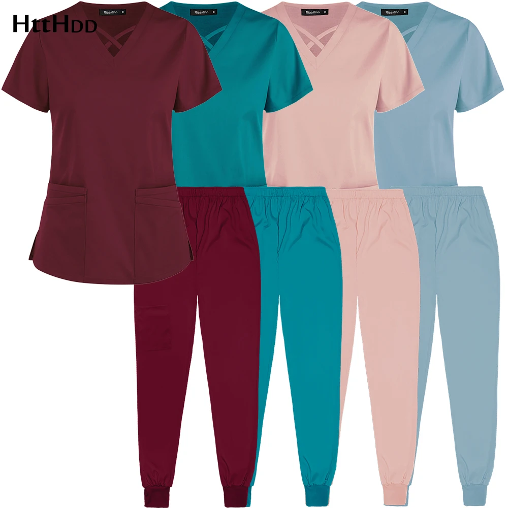Медицинская униформа для женщин, больницы, медсестры, топы, брюки, ...