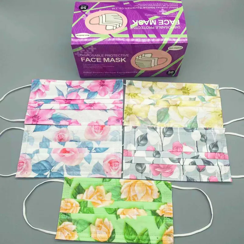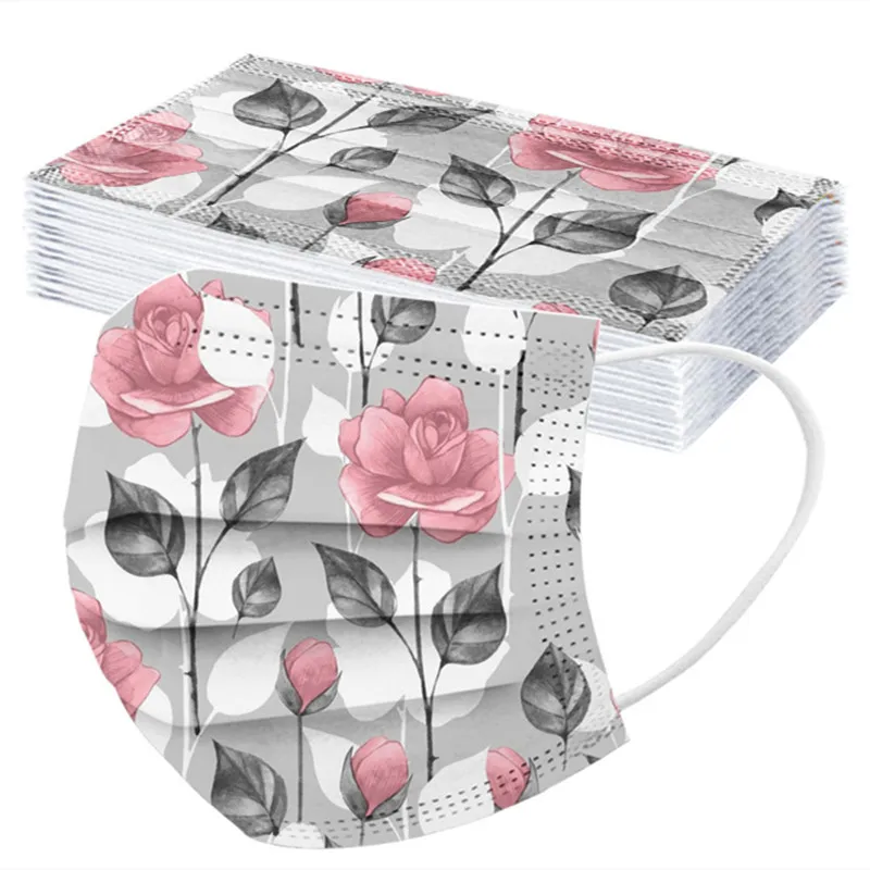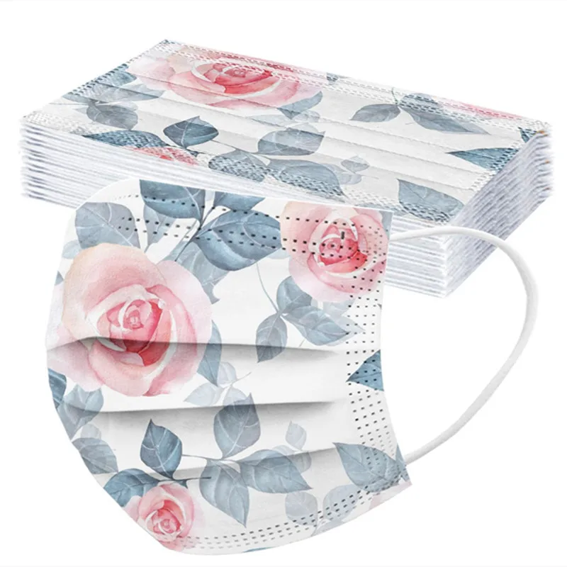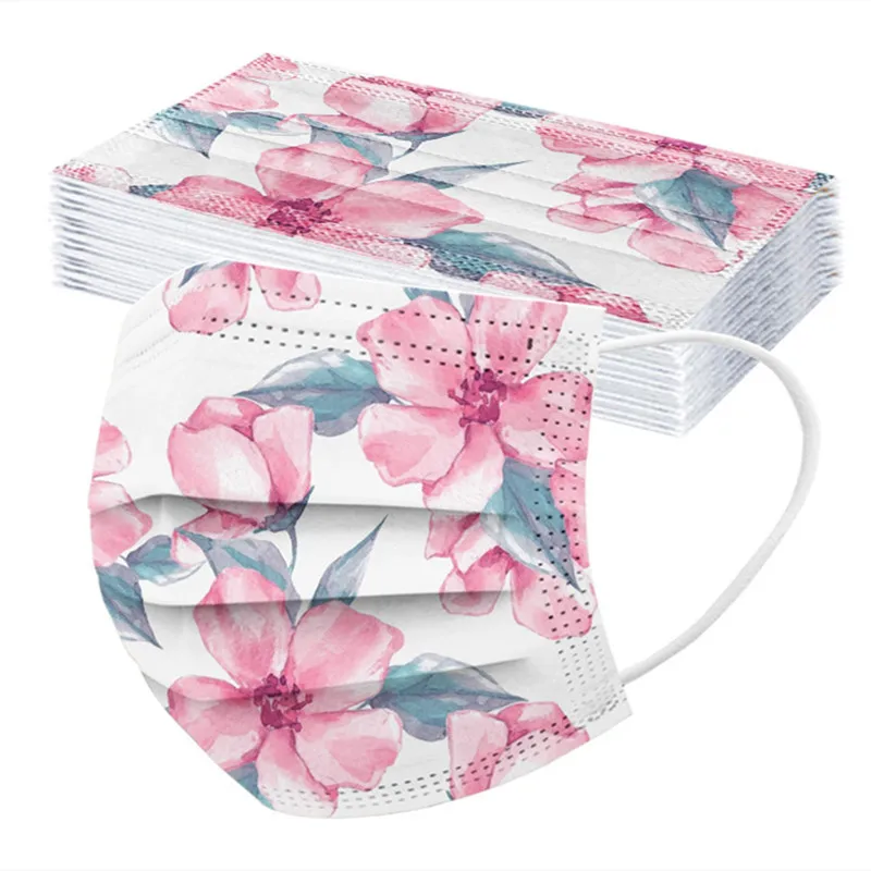 Маска для взрослых, маска для лица с цветочным принтом, одноразовая...