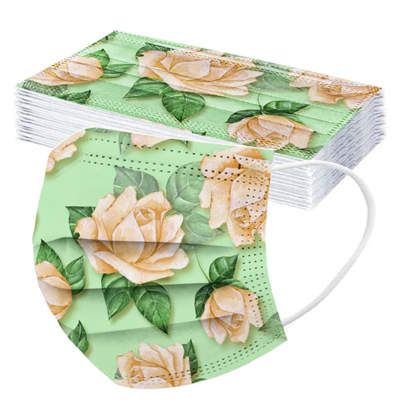 Маски для лица одноразовые с цветочным принтом для взрослых, 1050 шт.