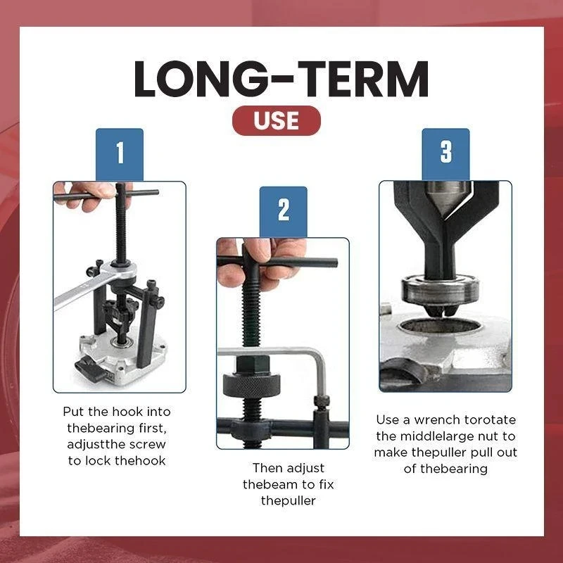Съемник подшипника используется в Удаление всех рукав типа подшипников с диаметром от 0,6 "до 1-1/2" (16 мм-38 мм).Конструкция конструкции,Мягко поворачивая маленький ключ может производить сильную силу тяги.
