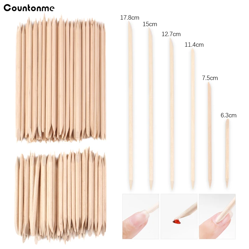 Оранжевый деревянные палочки для кутикулы толкатель 6 разных размеров, средство для удаления кутикулы вилки Стразы выбора, средства для маникюра 50/100 шт./компл.