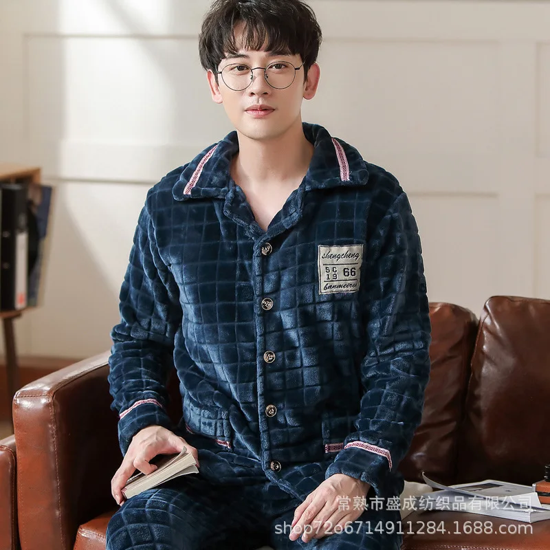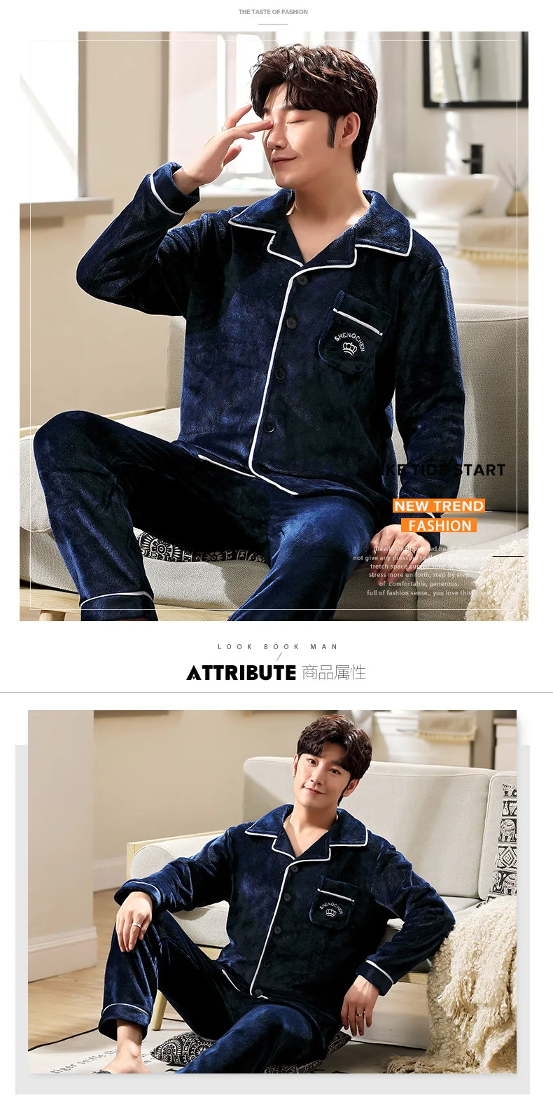 Новинка 2021, зимняя Толстая теплая фланелевая Мужская пижама, повс...