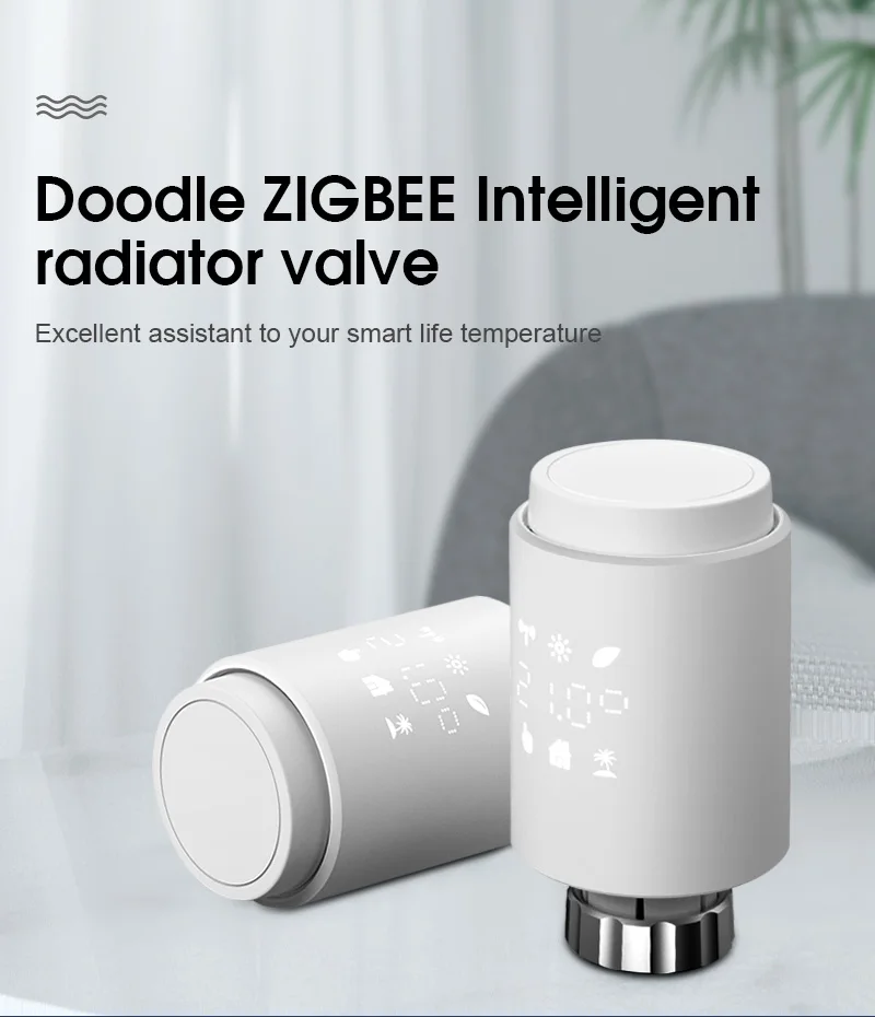 1. Термостат привода радиатора Smart Tuya ZigBee: Новый мини-дизайн с простым и четким ЖК-экраном на корпусе, термостат радиатора с ЖК-дисплеем и двумя секциями аккумуляторов AA, который является специальным клапаном, использующим вместе с нагревательным радиатором. Искусственно устанавливаемая температура в помещении, В основном используется в напольной системе отопления для контроля закрытия и открытия трубы.