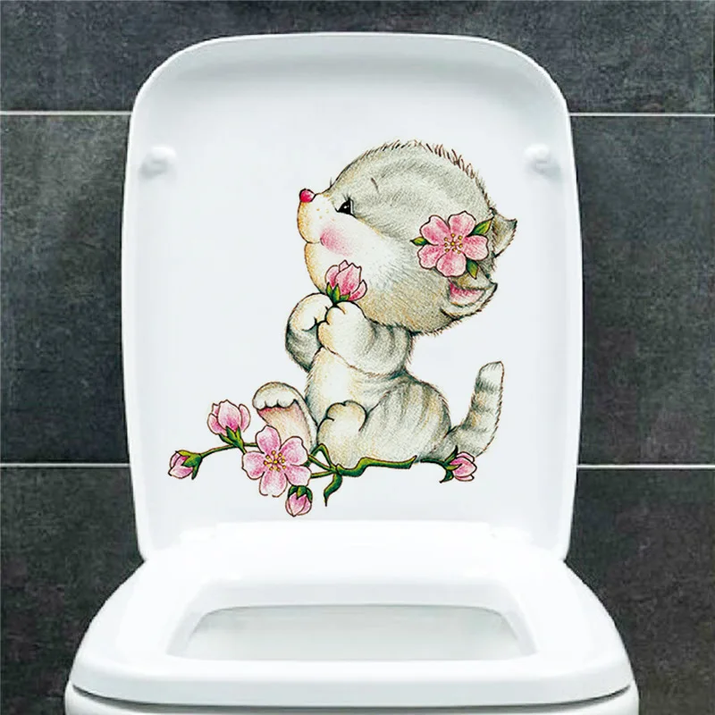 Наклейки на унитаз с милым котом, наклейки на стену в ванную комнату, забавные водонепроницаемые наклейки из ПВХ, украшение для дома, искусство, туалетный ершик, сделай сам