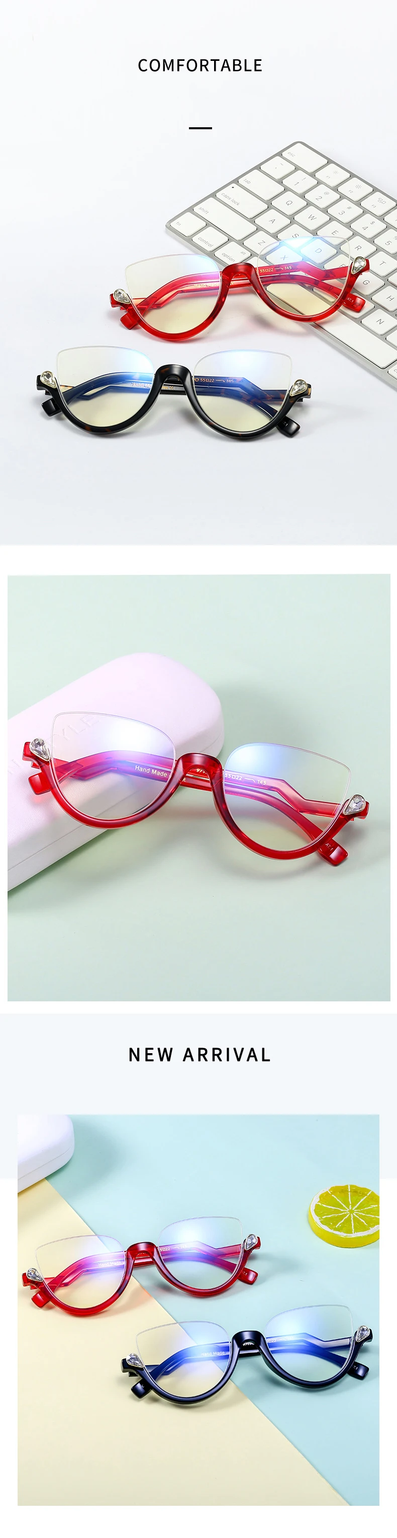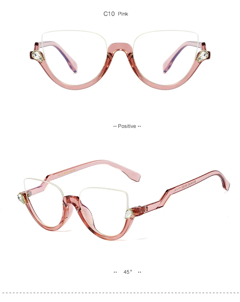 Полуободковые очки для чтения с прозрачными линзами, увеличительные очки с защитой от сисветильник, винтажные очки с кристаллами и бриллиантами, оправы для женщин