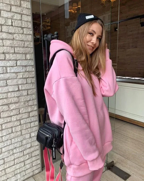 Женский зимний спортивный костюм, теплые свободные толстовки, женск...