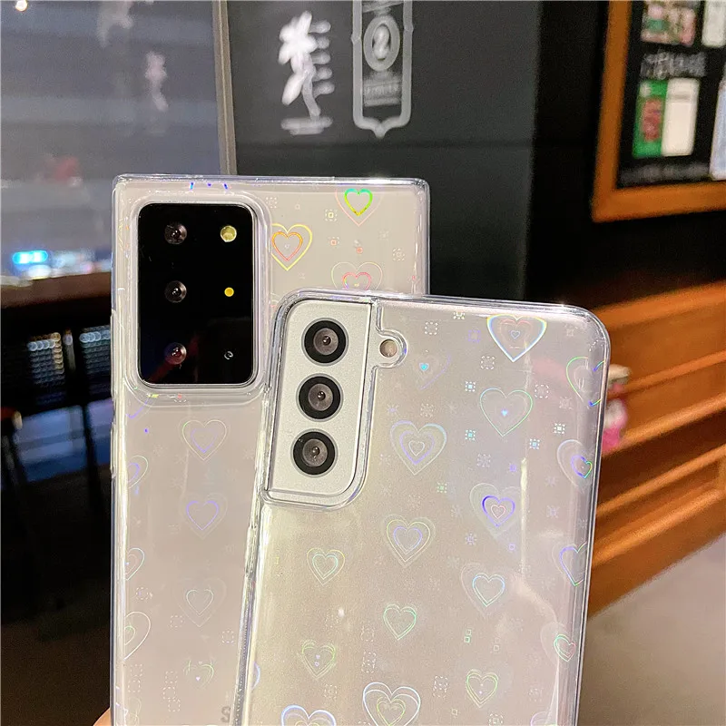 Прозрачный чехол с сердечками для Samsung Galaxy S21 S20 S22 Plus S20FE Note 20 Ultra A12 A21S A31 A32 4G A50 A52 A72 A71 A51