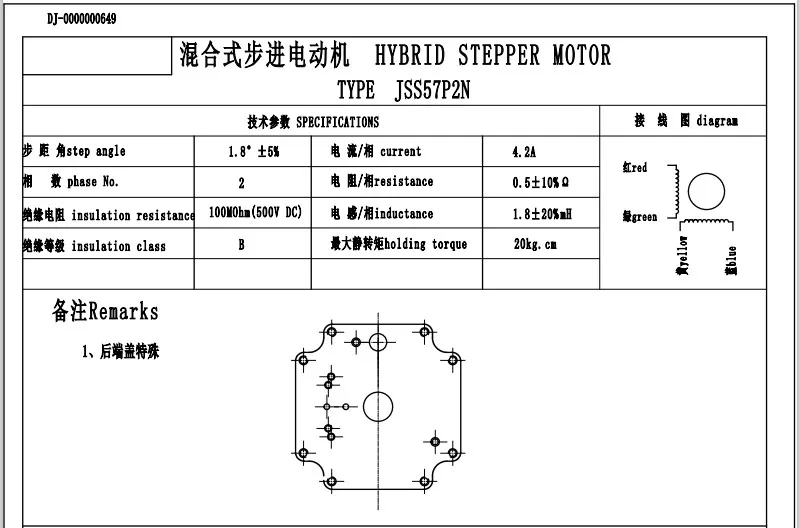 Удерживающий крутящий момент: 1.2 нм/2 нм/3 НмФаза: 2Длина: 56 мм/76 мм/112 ммСопротивление: 0,5 ОмЛиния кодировщика: 1000Напряжение: 2,1 VИндуктивность/фаза (mH 20%) : 1.8mH