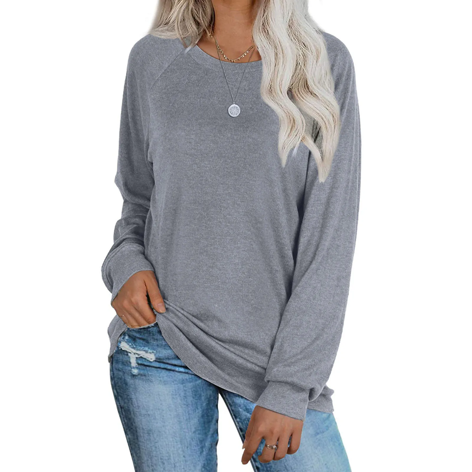 Женская футболка с длинным рукавом, однотонная Повседневная Туника в стиле Харадзюку, Топ для осени и зимы, T1