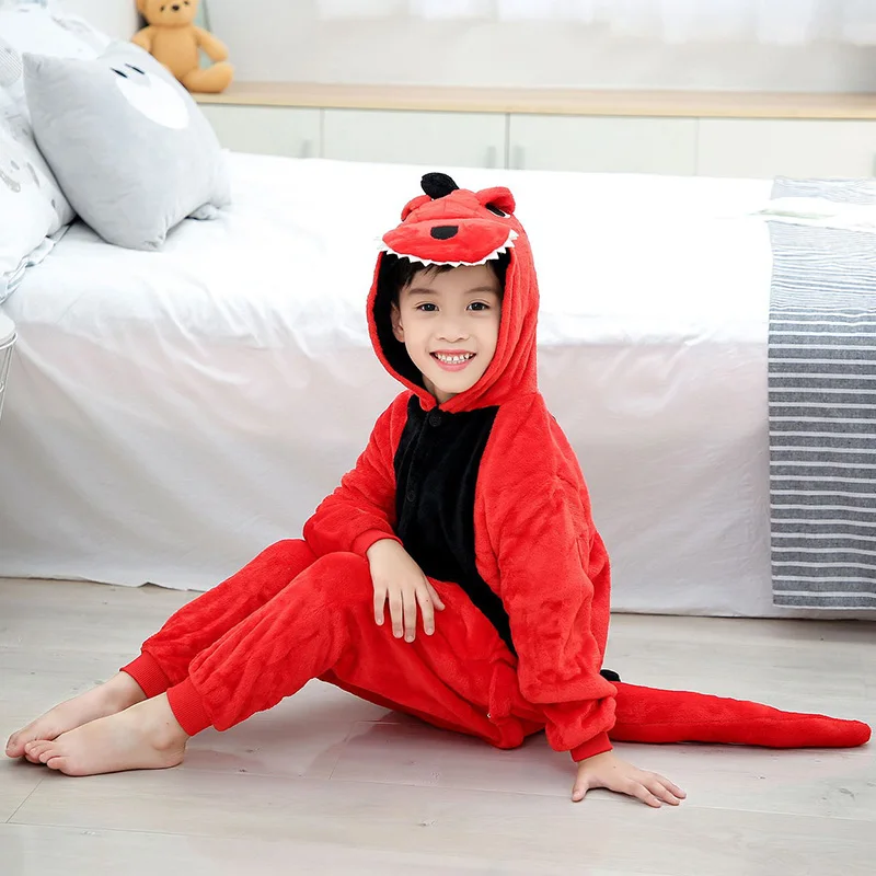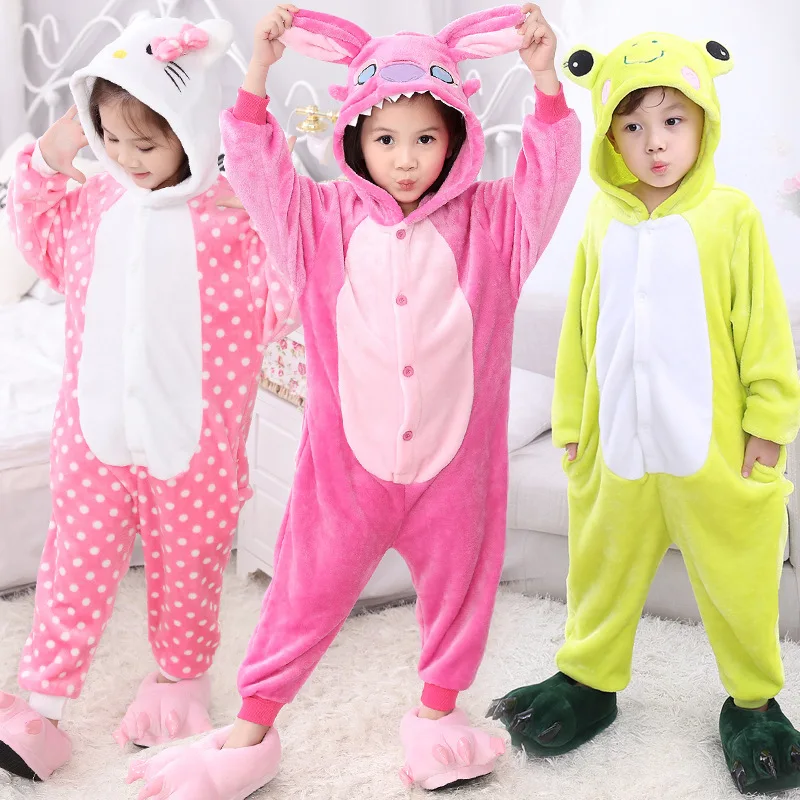 Зимняя фланелевая мягкая теплая Пижама с капюшоном, Мультяшные животные, пижамы для мальчиков, пижамы для девочек, детские пижамы, горячая распродажа