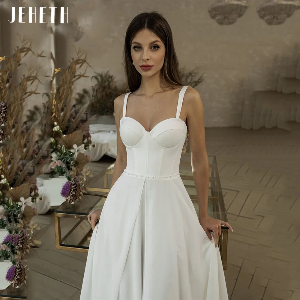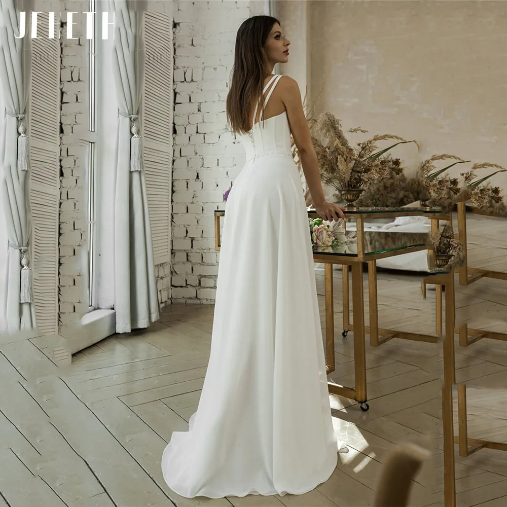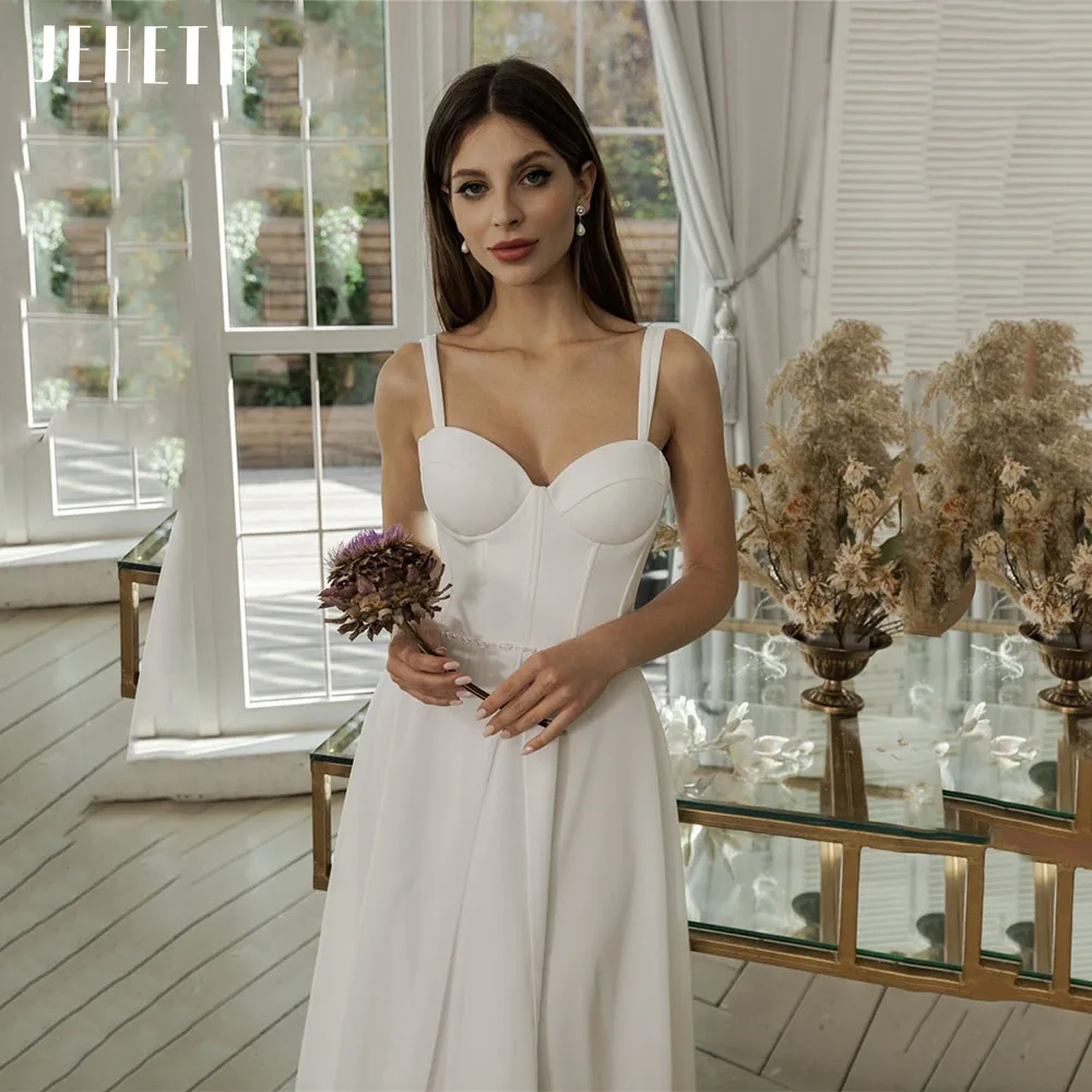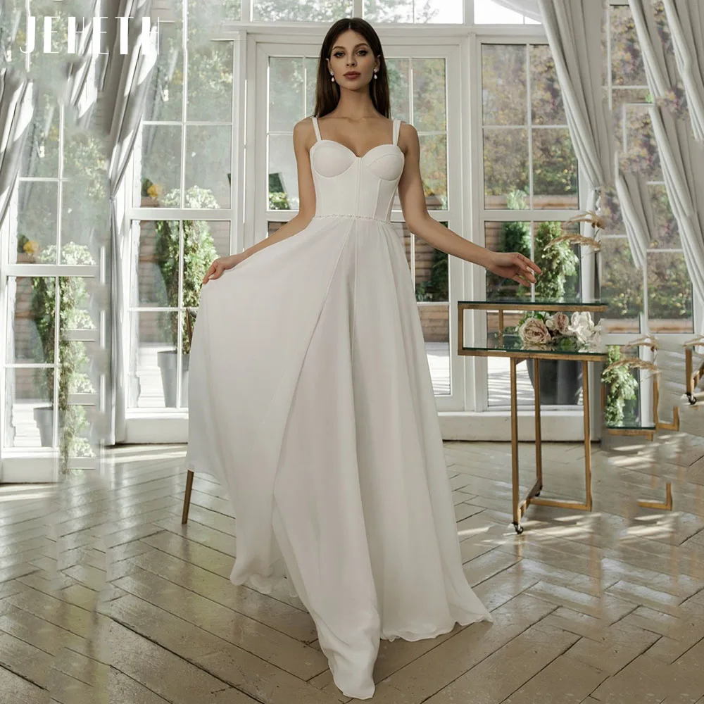 JEHETH шифоновые Свадебные платья на тонких бретельках для женщин, корсет, милая шея, трапециевидная Юбка со шнуровкой