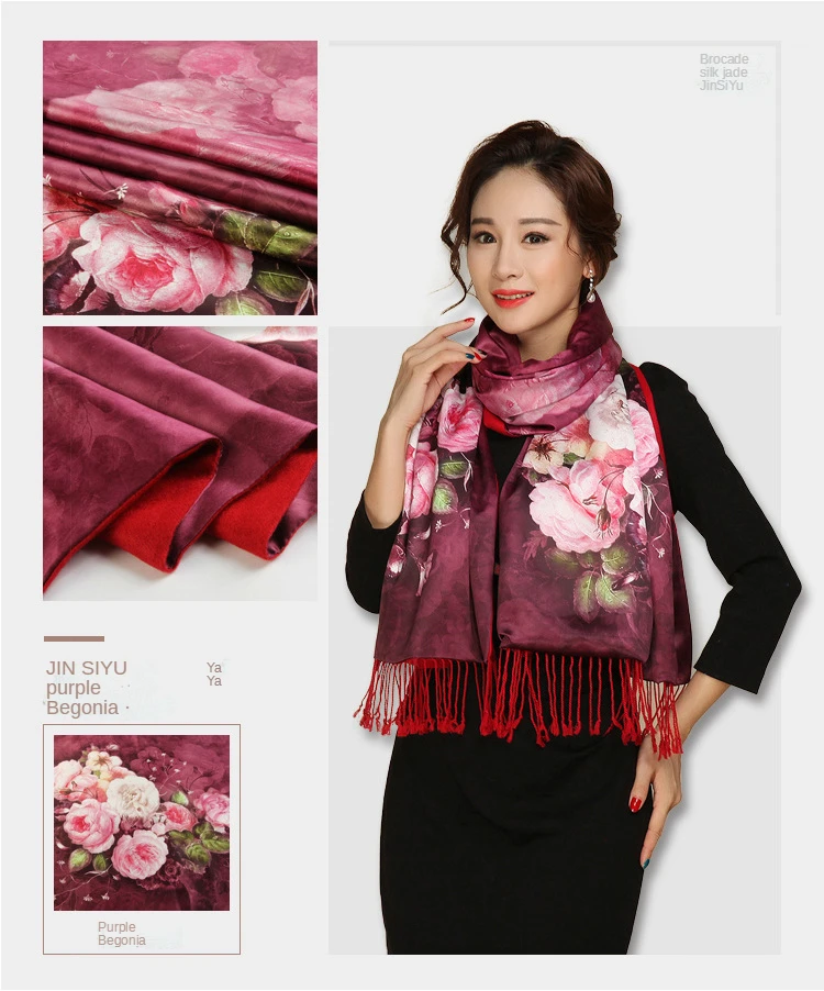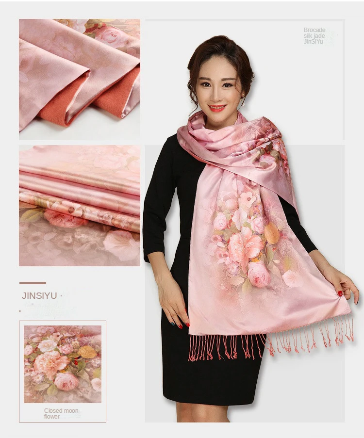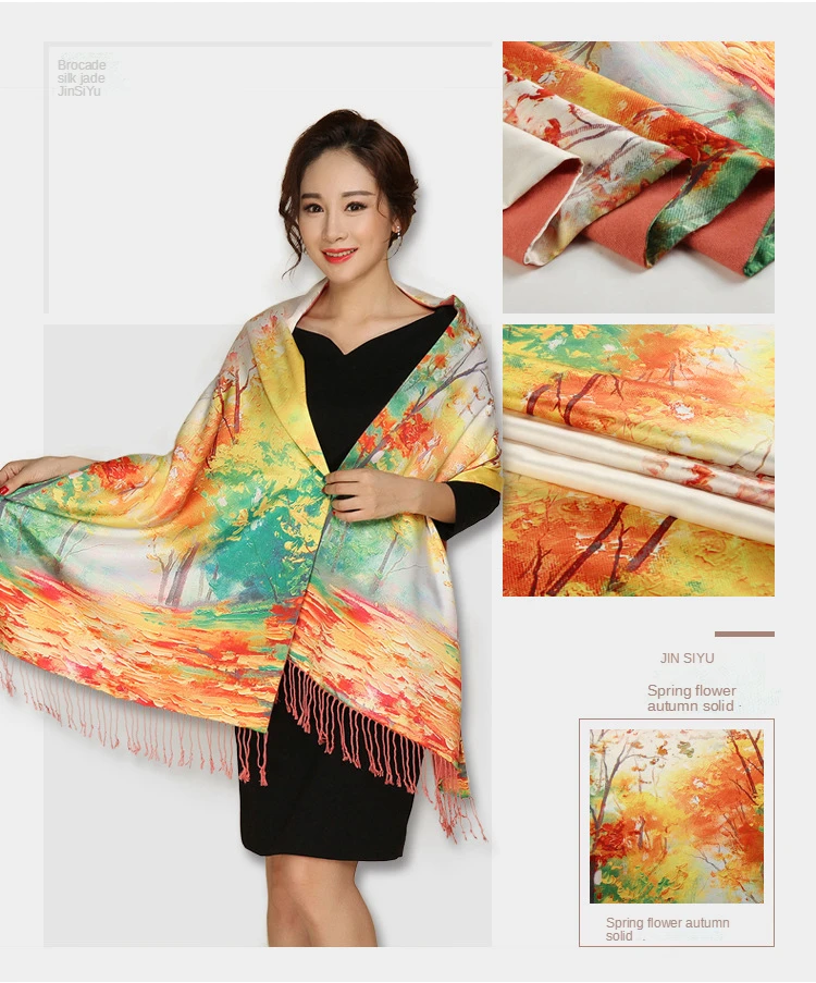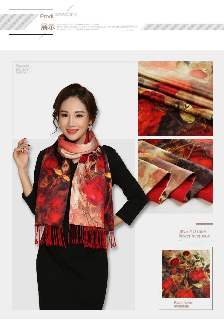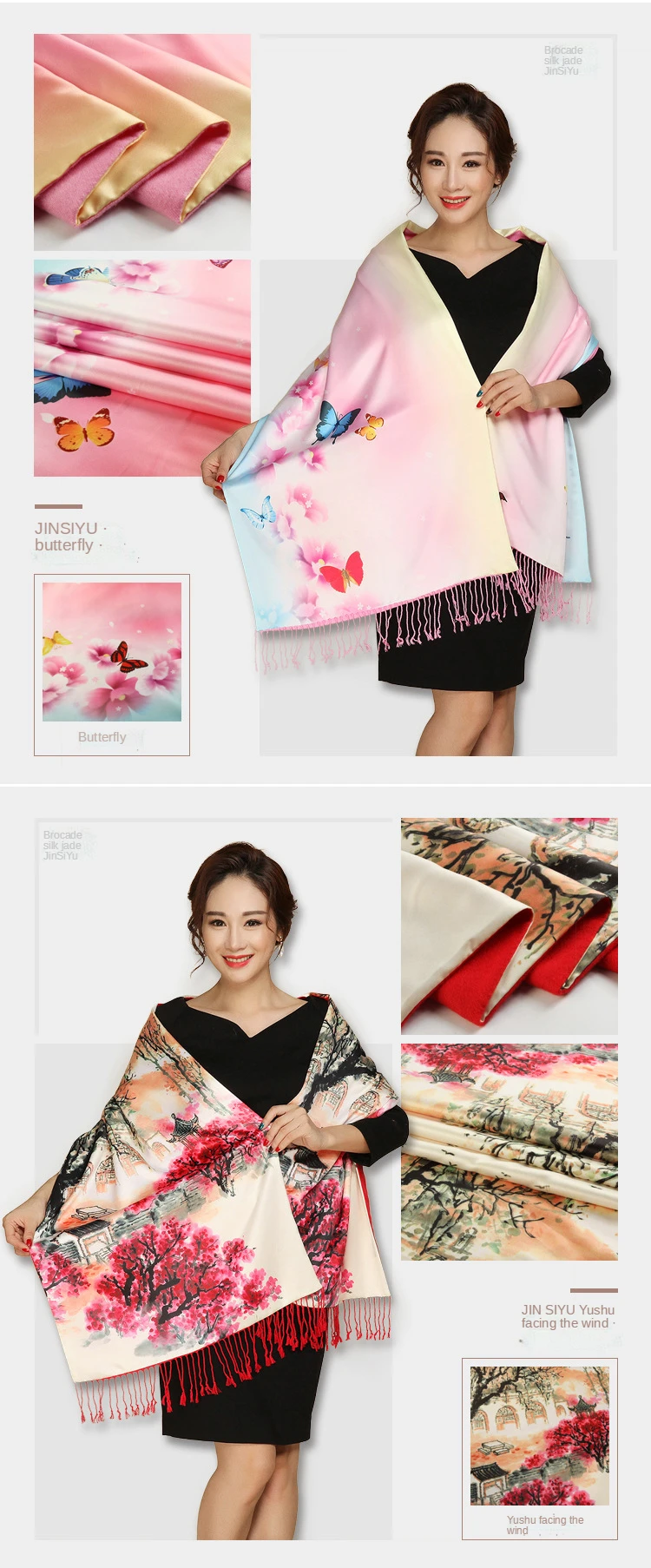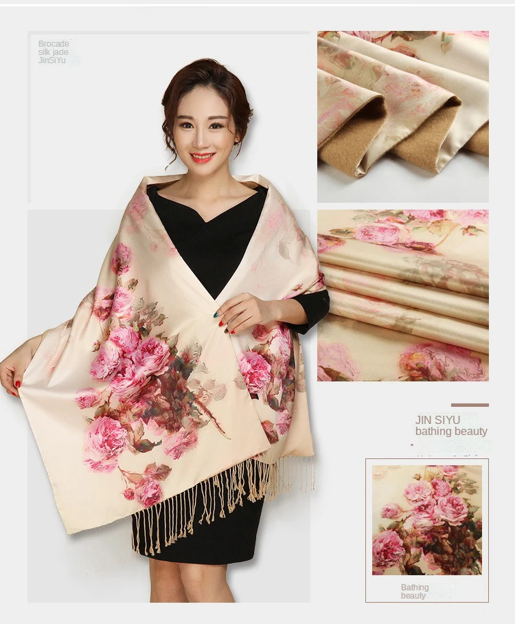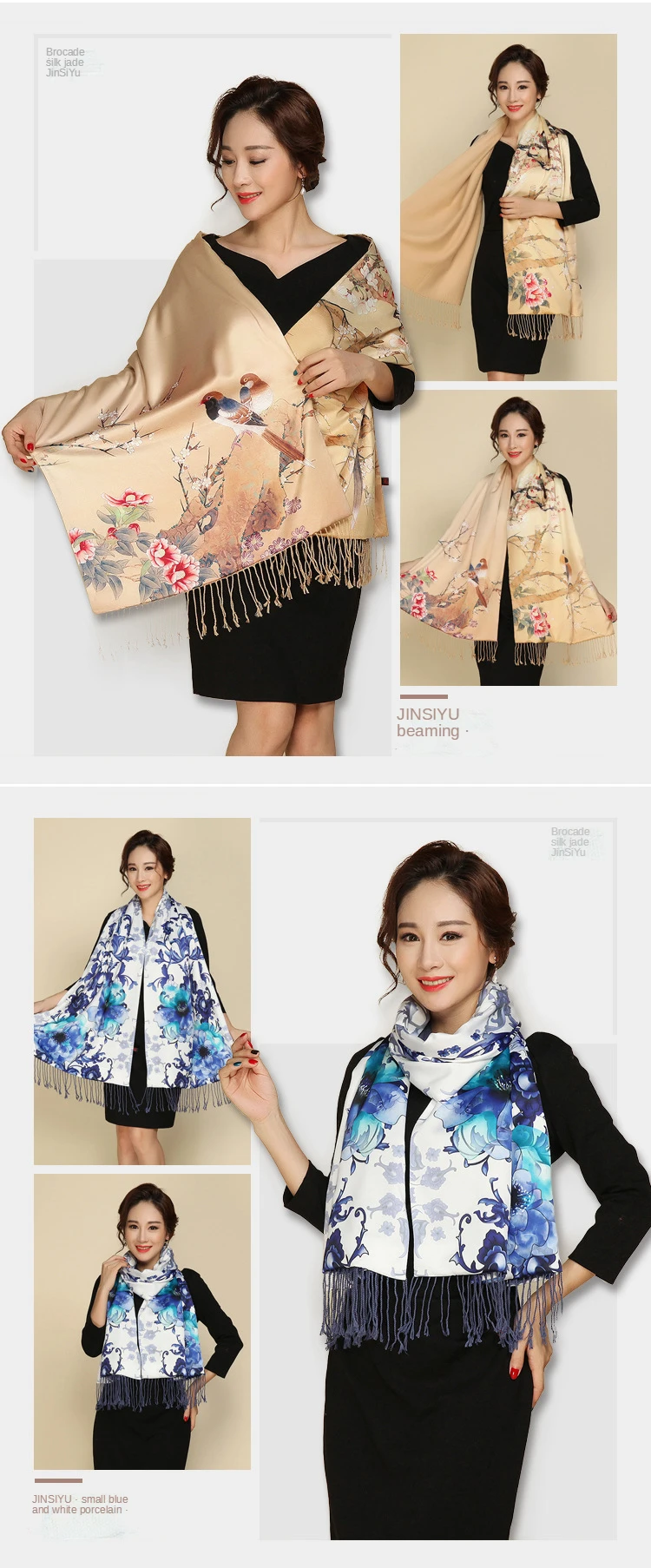 Женский шарф, шелковые шарфы с цветочным принтом, зимний теплый двухсторонний кашемировый шарф, женский длинный Палантин из пашмины, женские шали и накидка