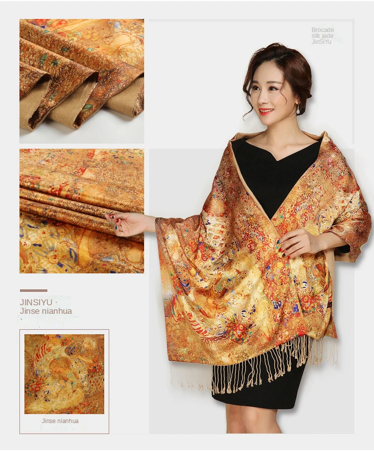 Шарф RUNMEIFA из пашмины, двусторонний, женский, Шелковый, кашемиро...