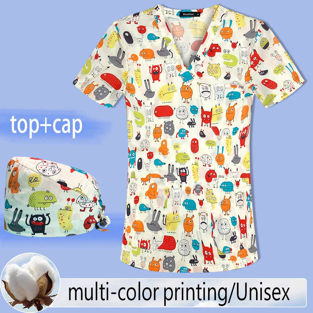 Хирургические Топы Униформа женская, с коротким рукавом, с принтом