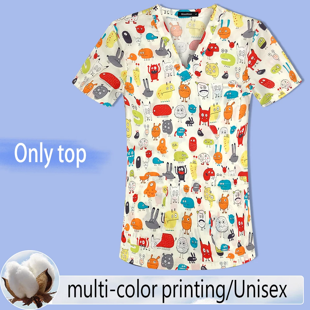 Scrubs tops Cute Cartoon printing Kindergarten teacher workwear pet...