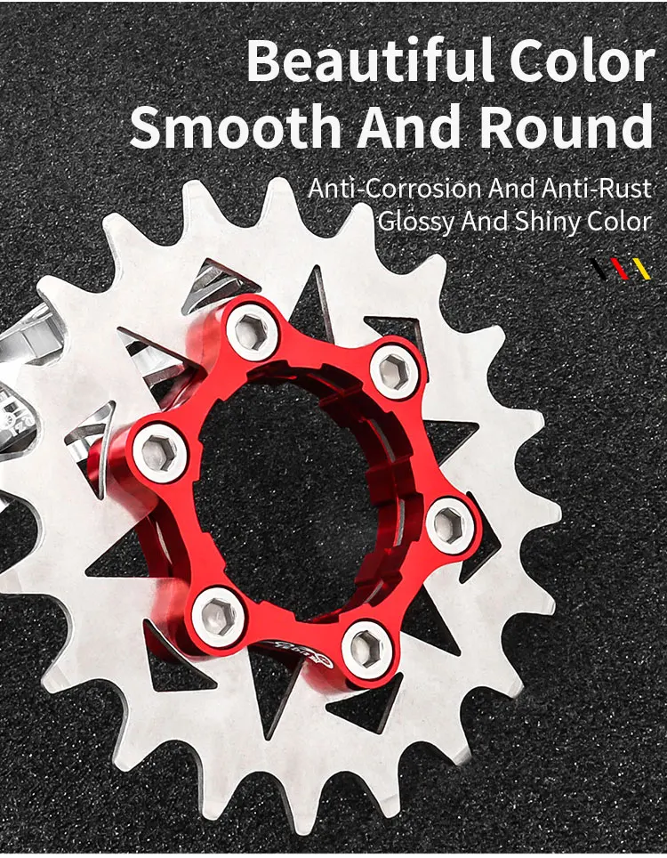 Маховик изготовлен из высокопрочной нержавеющей стали, прочность и твердость которой в два раза выше, чем у обычной нержавеющей стали 316, а твердость достигает 18 градусов. Винты изготовлены из нержавеющей стали, антикоррозийные и антикоррозийные, подходят для длительной езды на открытом воздухе.