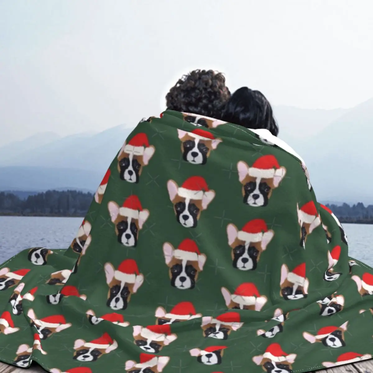 Одеяло в виде французского бульдога, Рождественская собака, зимнее животное, многофункциональное легкое покрывало для дивана, покрывало для улицы