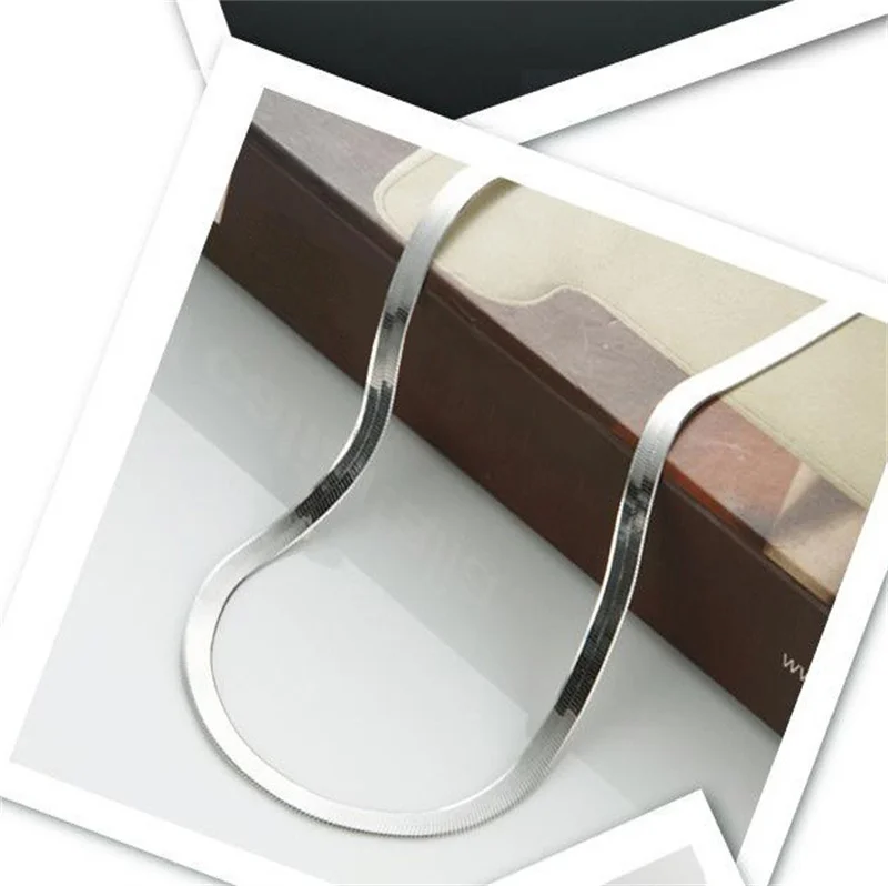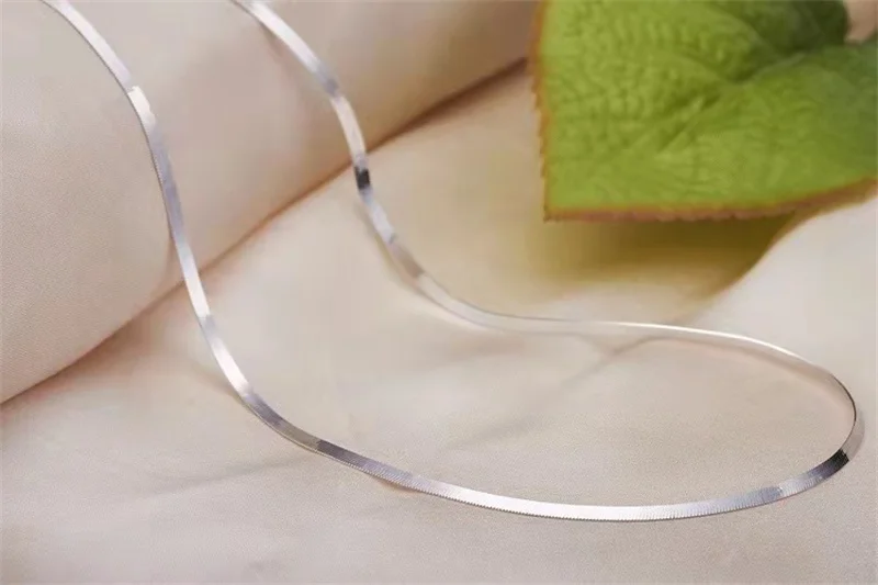 Цепочка из чистого серебра 925 пробы с лезвием шириной 4 мм, гладкое ожерелье унисекс для влюбленных пар до ключиц, ювелирные изделия для женщин и мужчин