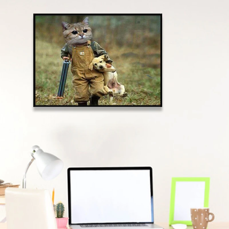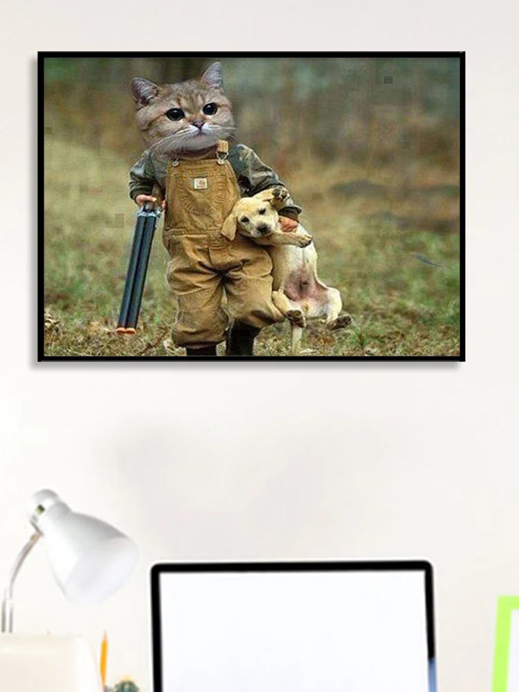 Алмазная 5D картина сделай сам с кошкой и собакой, полная вышивка, ...
