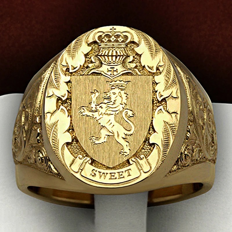 Корона Льва щит значок кольцо Европа и Америка позолоченный королевский...