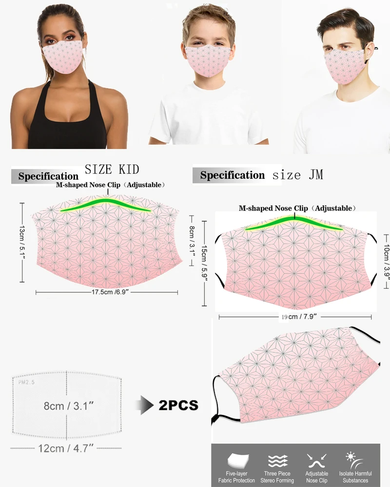Информация о продукте:Материал: полиэстерРисунок: дизайн с 3D-принтомПрименимые люди: унисексПрименимые варианты: ролевые игры, вечерние мероприятия, праздничные подарки, ежедневные путешествия, путешествия, кемпинг, Велоспорт, хороший выбор для подарков друзьям, семье и себеРазмеры: малыш: 17,5 см * 13 смJM:19 см * 15 см(Погрешность в измерениях может составлять 1-3 см, детям в возрасте до двух лет запрещено пользоваться им)Функции: PM2.5, анти-смог, промышленное анти-загрязнение, защита от выхлопных газов автомобиля, пыли, вторичного дыма, пыльцы аллергии, холода и тепла и т. Д.