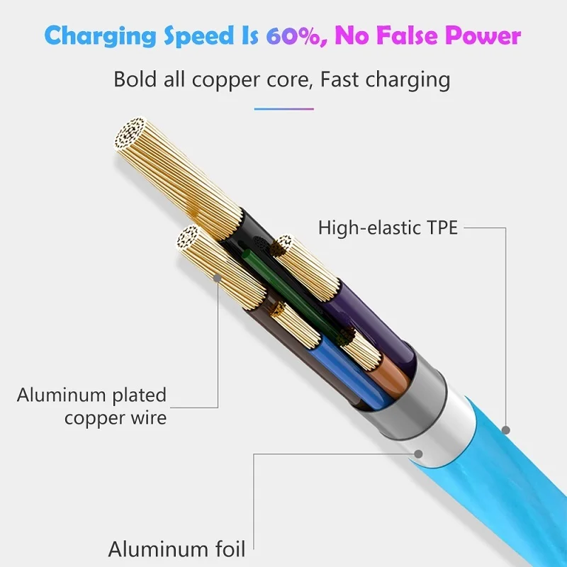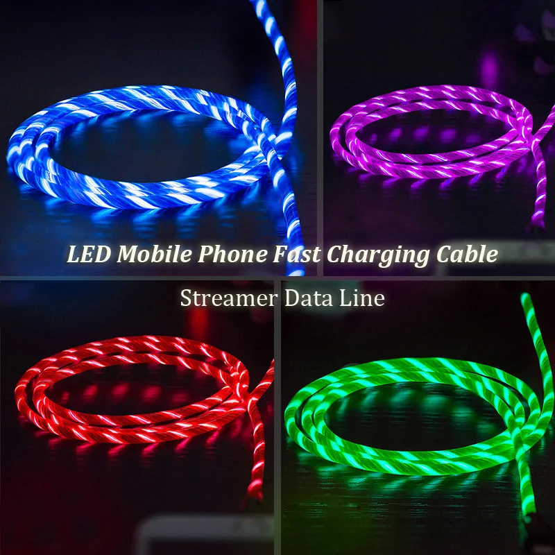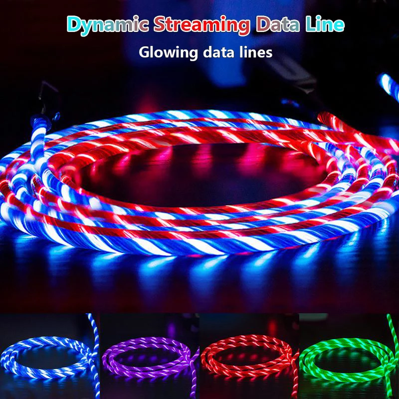 Зарядный кабель Micro USB Type-C, светодиодный светящийся для Iphon...