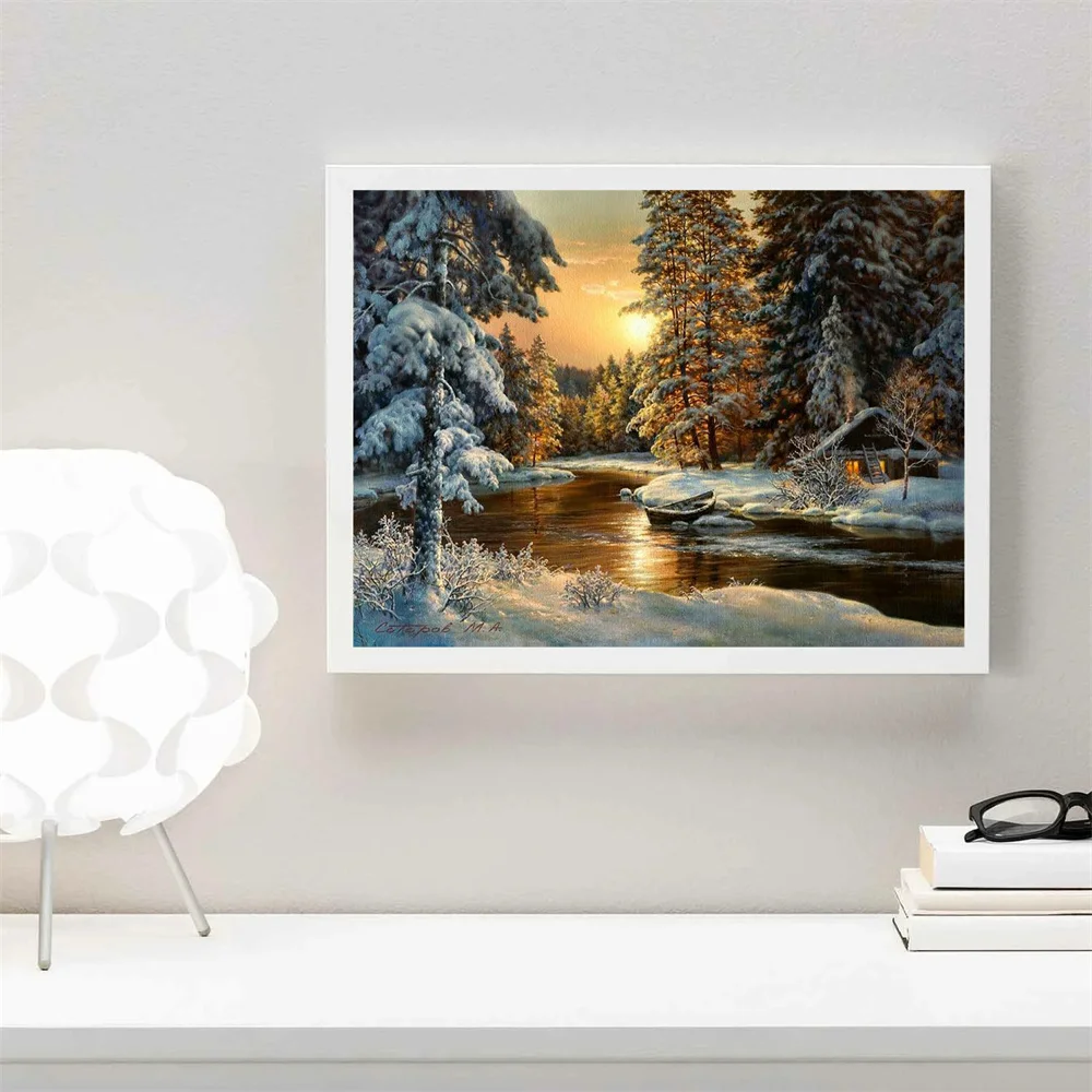 HUACAN вышивка крестиком зимний пейзаж Рукоделие наборы вышивка сне...
