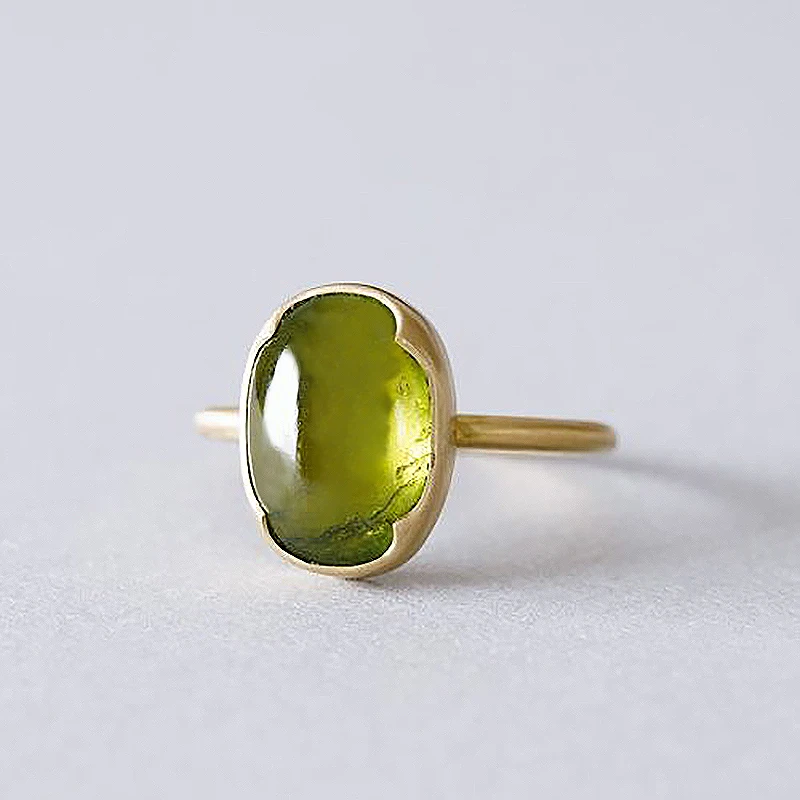 винтаж Кольцо обручальное с имитацией камня оливкового и зеленого цвета