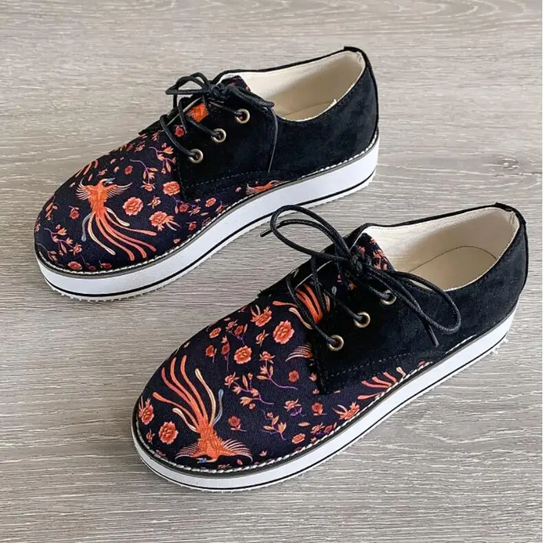 Туфли женские на платформе с принтом, повседневная обувь на шнуровке, лоферы, пуловеры, плоская подошва, размеры 43, 2021