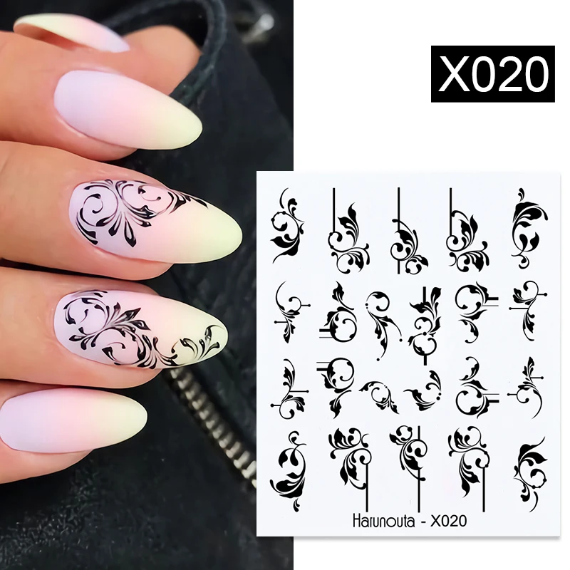 Черные Водные Переводные картинки с французскими цветами и лозой Harunouta, весенне-летние леопардовые алфавитные листья, наклейки для дизайна ногтей, декоративные аксессуары